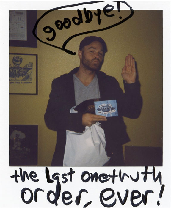 in other news, Jeremy's company One Truth has finally shut it's doors. He shipped off the last order, to Bill from Canada, last friday. Thats it. The book is written. Jeremy was extremely excited to see this get accomplished. He took this picture and sent it with Bill's order, which i'm sure Bill will be extremely excited about.